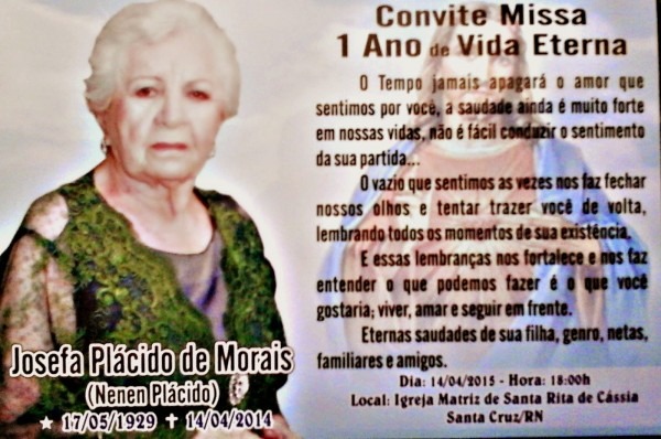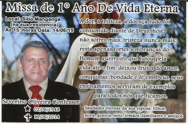 CONVITE MISSA DE 1 ANO DE VIDA ETERNA DE SEVERINO NILA . www.erivanjustino.com.br