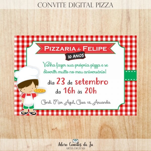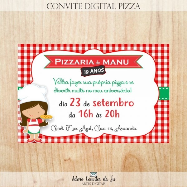 Arte convite digital pizzaria no Elo7 . Compre arte convite digital pizzaria no Elo7 por R$ 22,00 | Encontre mais produtos de Kit Digital e Papel e Cia parcelando em até 12 vezes | Arte digital de convite para imprimir ou enviar por redes sociais