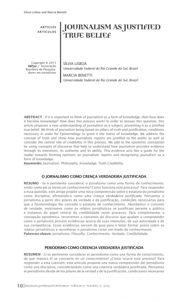 (PDF) Journalism as Justified True Belief. ð£ðð | If it is important to think of journalism as a form of knowledge, then how does it become knowledge? How does this process work? In order to answer this question, this article proposes a new understanding of journalism as a subject; presenting it as a justified true belief.... www.researchgate.net