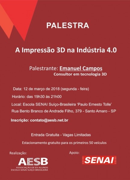 Convite: workshop de manufatura 4.0 no SENAI SuÃço! . www.impresso3d.com.br