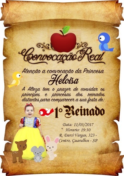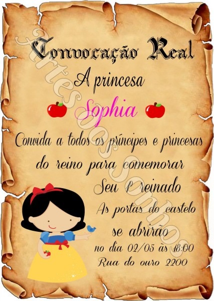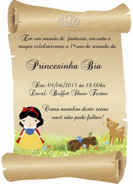 Convite Pergaminho Branca de neve no Elo7 . Compre Convite Pergaminho Branca de neve no Elo7 por R$ 1,25 | Encontre mais produtos de Convites de Aniversário e Convites parcelando em até 12 vezes | CONVITES TAMANHO: 10X14 CM