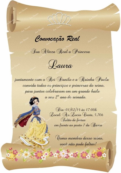Convite pergaminho Branca de Neve no Elo7 . Compre Convite pergaminho Branca de Neve no Elo7 por R$ 1,20 | Encontre mais produtos de Convites de Aniversário Infantil e Aniversário e Festas parcelando em até 12 vezes | Convite Personalizado pergaminho princesas