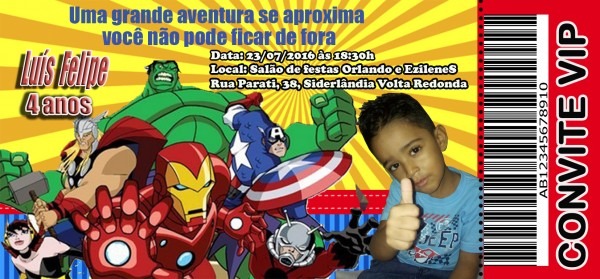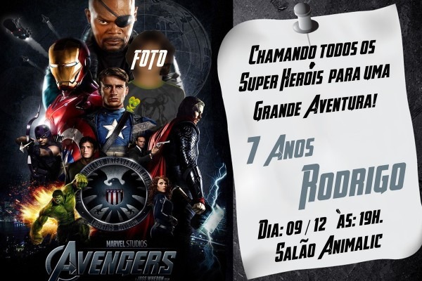 Convite Personalizado Os Vingadores no Elo7 . Compre Convite Personalizado Os Vingadores no Elo7 por R$ 1,90 | Encontre mais produtos de Convites de Aniversário e Convites parcelando em até 12 vezes | Convite personalizado com a foto do aniversariante.