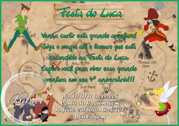 BIBIEL: Convite Peter Pan do Luca. bibielartesedecoracoes.blogspot.com