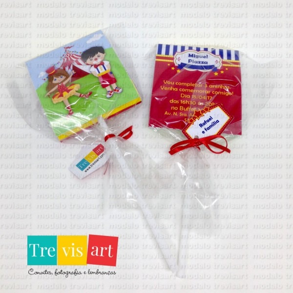 Convite Circo . Compre Convite Circo - Pirulito no Elo7 por R$ 5,60 | Encontre mais produtos de Convites de Festa Infantil e Convites parcelando em até 12 vezes | Convite composto por pirulito + capa frente e verso personalizada + embalagem com lacinho + tag para nome do convidado (que pode ser preenchid..., 90AF90 www.elo7.com.br