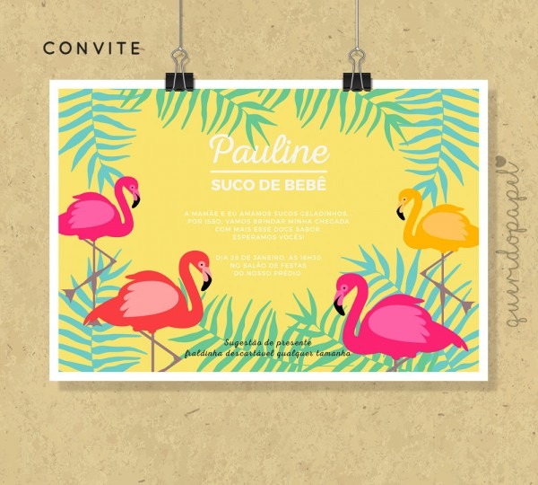 Convite Flamingo . Compre Convite Flamingo | Arte Digital no Elo7 por R$ 27,80 | Encontre mais produtos de Convites de Chá de Bebê e Convites parcelando em até 12 vezes | A Querido Papel trabalha exclusivamente com envio de artes digitais, por isso, compre apenas uma vez e imprima quantas vezes quiser!