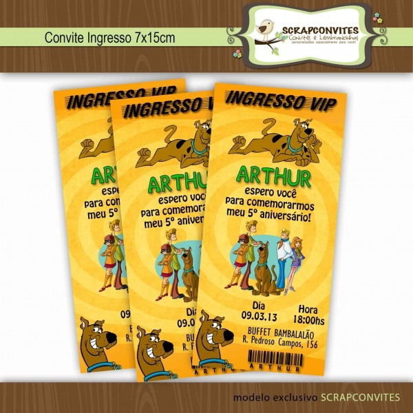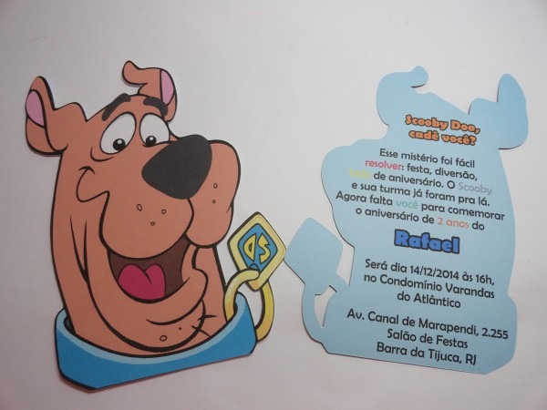 Convite Scooby Doo no Elo7 . Compre Convite Scooby Doo no Elo7 por R$ 2,59 | Encontre mais produtos de Convites de Aniversário e Convites parcelando em até 12 vezes | Convite Scooby Doo. Na frente a cabeça do Scooby e atrás os dados da festa.