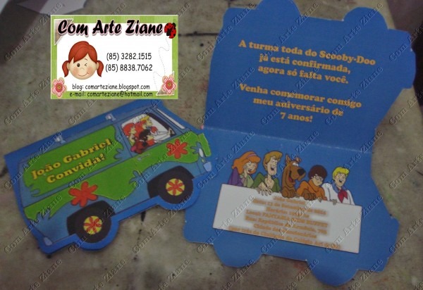 Convite Scooby Doo no Elo7 . Compre Convite Scooby Doo no Elo7 por R$ 4,80 | Encontre mais produtos de Convites de Aniversário Infantil e Aniversário e Festas parcelando em até 12 vezes | Convite impresso em formato do carro do scooby doo com o nome do(a) aniversariante na parte externa.