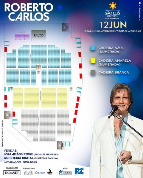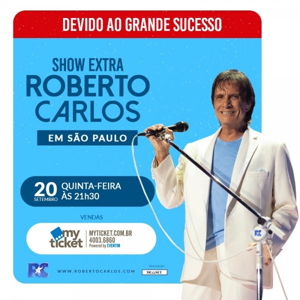 my ticket . Venha, SHOW EXTRA, Ingressos, Ticket, PoweredBy Eventim PELO TELEFONE, BILHETERIA OFICIAL Espaço, Américas Rua Tagipuru, Barra Funda, Todas as notÃcias de última hora ao vivo, fotos e vÃdeos em tempo real sobre Roberto Carlos www.scoopnest.com
