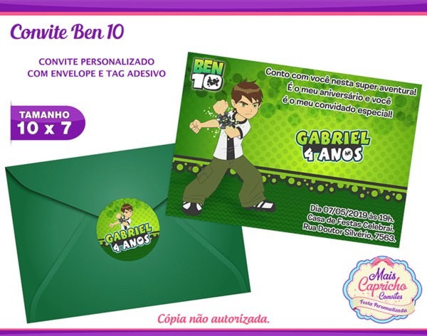 Convite Ben 10 no Elo7 . Compre Convite Ben 10 no Elo7 por R$ 1,39 | Encontre mais produtos de Convites de Aniversário Infantil e Aniversário e Festas parcelando em até 12 vezes | * DESCRIÃÃO DO PRODUTO: