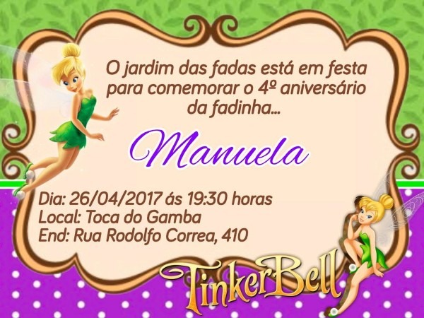 Convite digital Tinker Bell no Elo7 . Compre Convite digital Tinker Bell no Elo7 por R$ 30,00 | Encontre mais produtos de Mesa de Guloseimas e Aniversário e Festas parcelando em até 12 vezes | Convite Digital