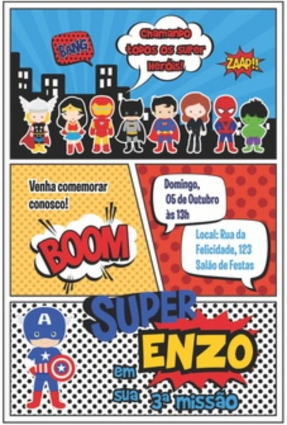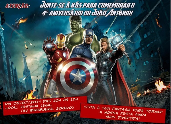 Convite Virtual Aniversário Digital Vingadores Sem Frete . Compre-o no Mercado Livre por R$ 23,99 - Compre em 12 parcelas. Encontre mais produtos de Brinquedos e Hobbies, Ar Livre, Malabares e Festas, Festas , Convites, Aniversário Infantil. produto.mercadolivre.com.br