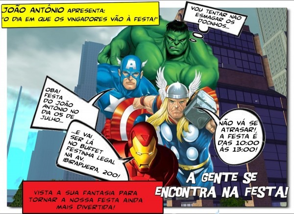 Convite Virtual Vingadores digital no Elo7 . Compre Convite Virtual Vingadores digital no Elo7 por R$ 30,00 | Encontre mais produtos de Convites de Festa Infantil e Convites parcelando em até 12 vezes | DICA: COMPARE AS LOJAS, CONSULTE AS AVALIAÃÃES! Temos mais de 1300 avaliações positivas! Evite transtornos, aqui você tem GARANTIA..., 40A4C9 www.elo7.com.br
