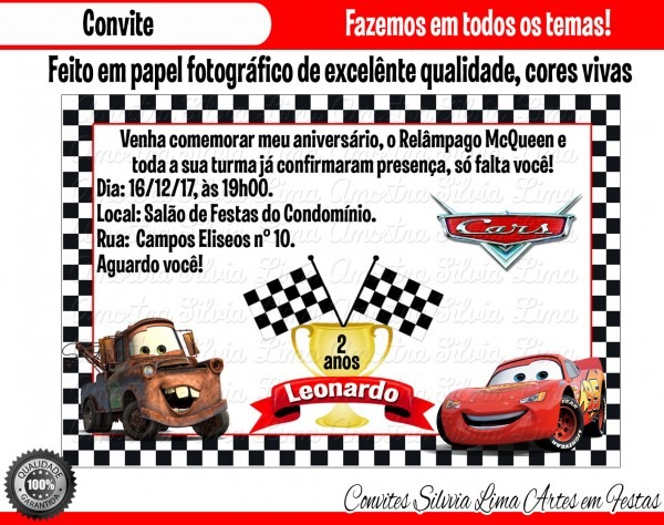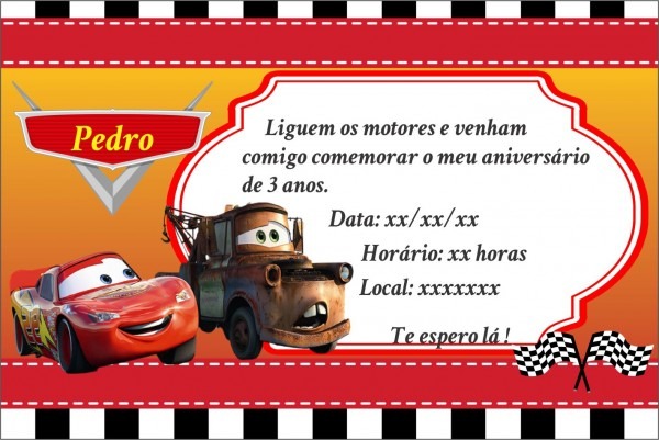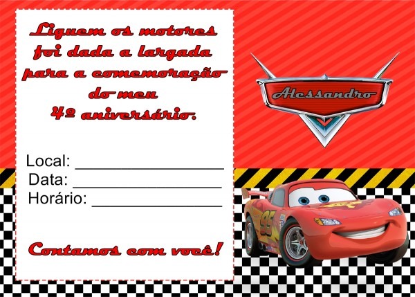 Convite carros disney no Elo7 . Compre Convite carros disney no Elo7 por R$ 0,49 | Encontre mais produtos de Convites de Festa Infantil e Convites parcelando em até 12 vezes | Convite Personalizado, produto de qualidade.