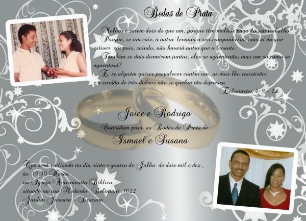 Convite de Bodas de Prata . O convite de bodas de prata deve ser algo realmente lindo. Primeiramente devemos ter em consideração de que não é tão fácil encontramos hoje casais que www.dicarapida.com