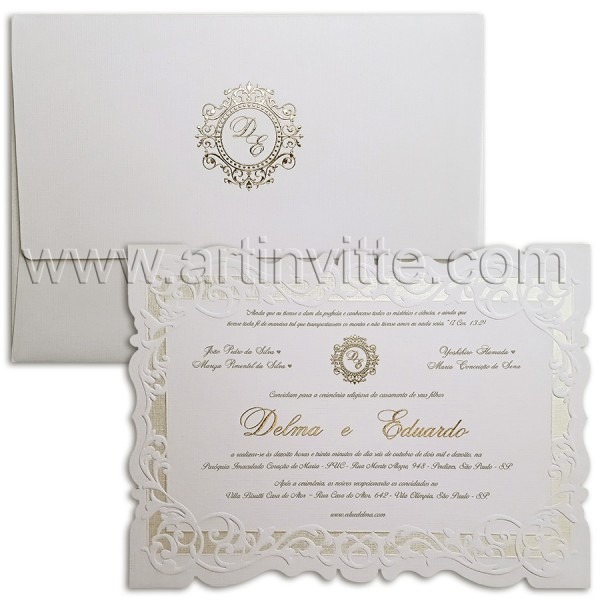 Convite de Casamento Sevilha . Convite de Casamento Sevilha - um dos convites mais rebuscado que temos, um lindo detalhe floral em relevo acompanhado de corte em toda a borda do convite. www.artinvitte.com