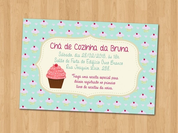 Convite . Compre Convite - Chá de Cozinha/Panela no Elo7 por R$ 1,65 | Encontre mais produtos de Convites de Chá de Cozinha e Convites parcelando em até 12 vezes | Convite Personalizado - Chá de Cozinha Cupcake