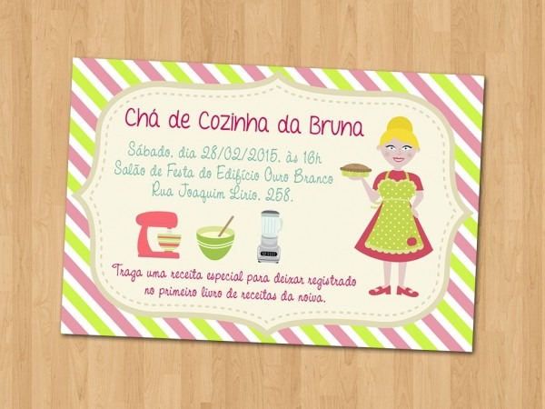 Convite . Compre Convite - Chá de Cozinha Rosa e Verde no Elo7 por R$ 1,65 | Encontre mais produtos de Convites de Chá de Cozinha e Convites parcelando em até 12 vezes | Convite Personalizado - Chá de Cozinha Rosa e Verde
