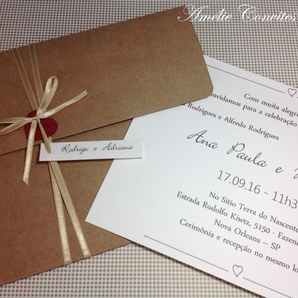 Convite Envelope Kraft no Elo7 . Compre Convite Envelope Kraft no Elo7 por R$ 7,00 | Encontre mais produtos de Convites de Casamento e Convites parcelando em até 12 vezes | Tamanho: 14 x 20 cm