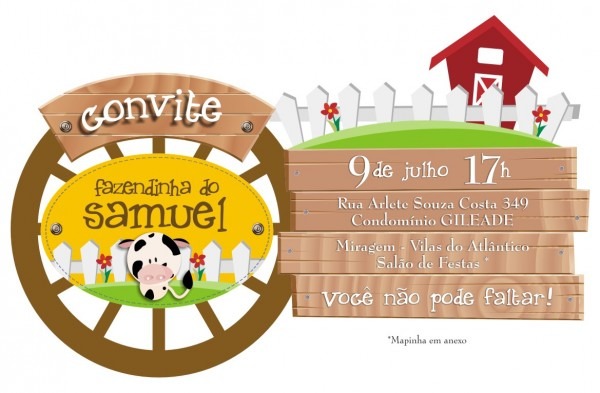 Convite fazendinha . Contatos: ag_artevideo@hotmail.com Face:https://www.facebook.com/pages/AG-Retrospectivas/171634216360033 www.youtube.com