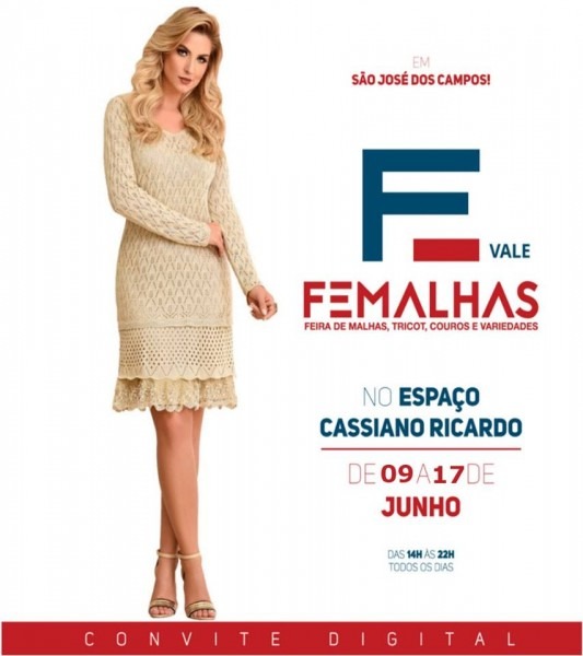 FEMALHASVALE . FEMALHASVALE - De 09 a 17 de junho de 2018 acontecerá aFemalhas Femalhasvale - Feira de Malhas, Tricot, Couros e Variedades - no Espaço Cassiano Ricardo São José dos Campos, todos os dias das 14: 00 às 22:00h empresasvalesjc.com.br