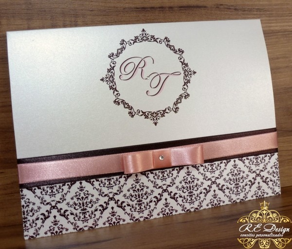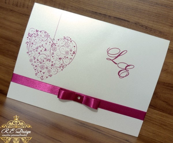 (com encarte interno mesmo papel). Com fita de cetim largura 2cm ma..., 580F5F www.elo7.com.br
