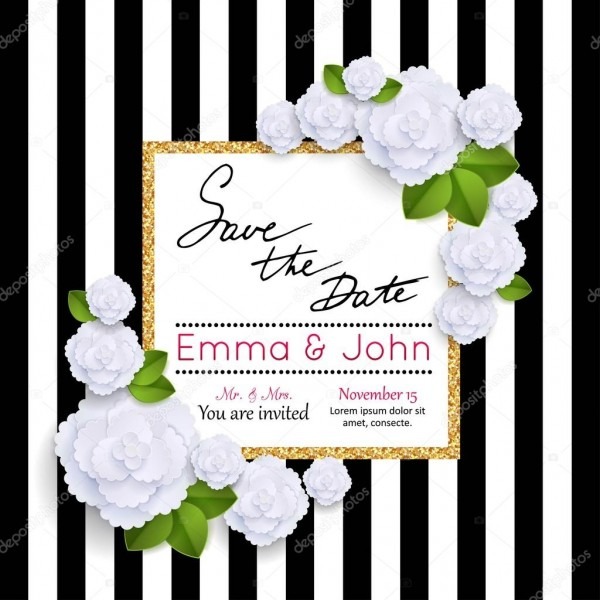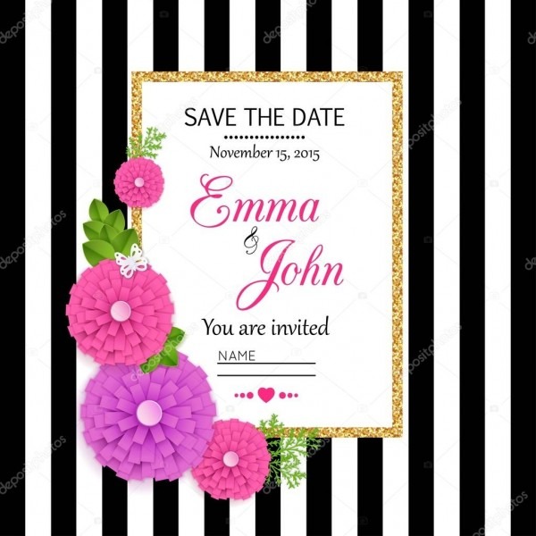 Salve os cartões de casamento com flores de papel e armação de ouro. Cartão de convite de casamento. Cartão de convite de casamento. Ilustração vetorial â Vetores de Stock © VectorGift .