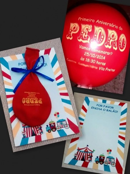 Ideia criativa: Convite com balão. Ideia para você fazer um convite criativo usando o balão que ao inflar revela as informações da festa. Passo a Passo de como fazer fazendoanossafesta.com.br