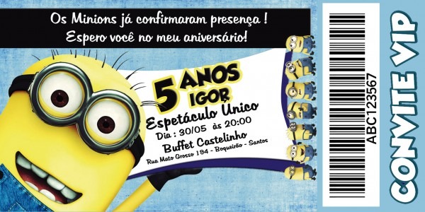 Convite Minions no Elo7 . Compre Convite Minions no Elo7 por R$ 1,09 com frete grátis | Encontre mais produtos de Convites de Aniversário Infantil e Aniversário e Festas parcelando em até 12 vezes | Convite Personalizado !