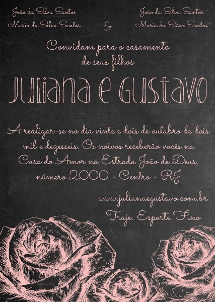 Convite romântico . Compre Convite romântico - Fundo Lousa no Elo7 por R$ 45,00 | Encontre mais produtos de Convites de Casamento e Casamento parcelando em até 12 vezes | Convite de casamento com fundo tipo lousa para todo tipo de casamento.