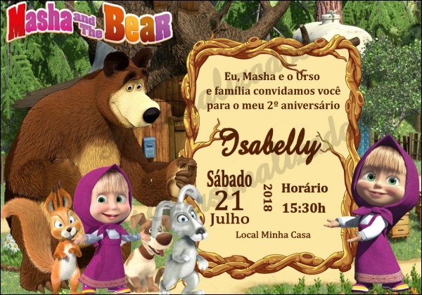 Convite Masha e o Urso Digital no Elo7 . Compre Convite Masha e o Urso Digital no Elo7 por R$ 10,00 | Encontre mais produtos de Convites de Aniversário Infantil e Aniversário e Festas parcelando em até 12 vezes | FAZEMOS EM OUTROS TEMAS, CONSULTE-NOS