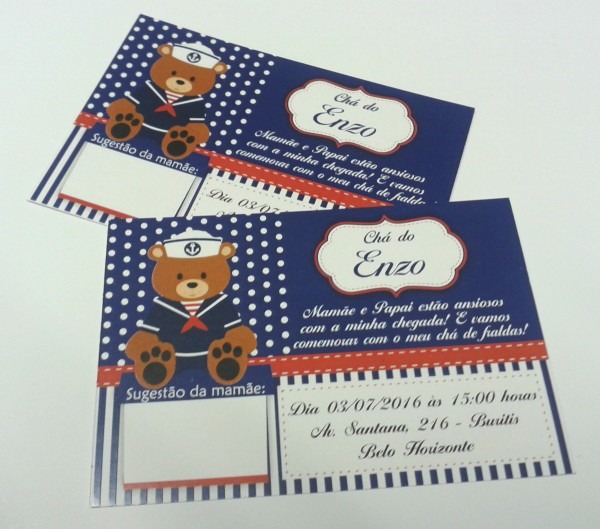 Convite Ursinho Marinheiro . Compre Convite Ursinho Marinheiro - Chá de Bebê no Elo7 por R$ 0,49 | Encontre mais produtos de Convites de Chá de Bebê e Convites parcelando em até 12 vezes | Convite para chá de bebê em papel couchê 250g. Ursinho Marinheiro.