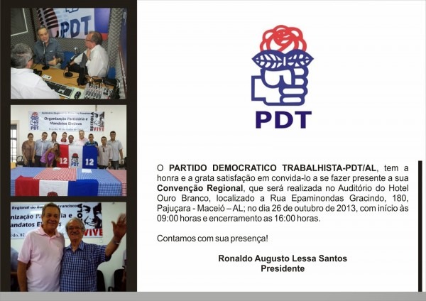 PDT ALAGOAS: Convite da Convenção Estadual do PDT/Alagoas. pdtalagoas.blogspot.com