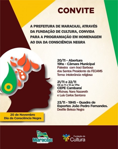 JOSà HONÃRIO ESCOLA SUSTENTÃVEL: Convite Evento Dia da Consciência Negra. josehonoriorodrigues.blogspot.com