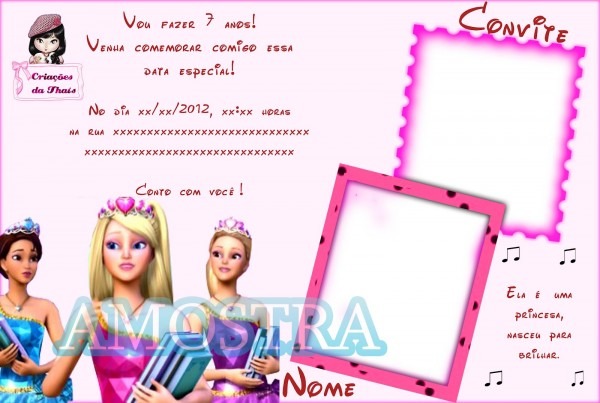Convite April 7, 2019April 6, 2019 by LuettaModelo de convite de aniversario da barbie Ateliê Josi Duarte: Convite Barbie Portal Secreto. josiduarteconvitespersonalizados.blogspot.comCriações da ThaÃs: Convites da Barbie Escola de Princesas. criacoesdathais.blogspot.com Related posts:Fazer convite de casamento online gratis para imprimirConvites de anivers?rios de 15 anosModelo de convite para festa da primaveraPost navigationFrases para convite 1 ano pequeno principeConvite de casamento gian & giovaniLeave a Reply Cancel replyYour email address will not be published. Required fields are marked *Comment *Name * Email * Website Save my name, email, and website in this browser for the next time I comment. Δ