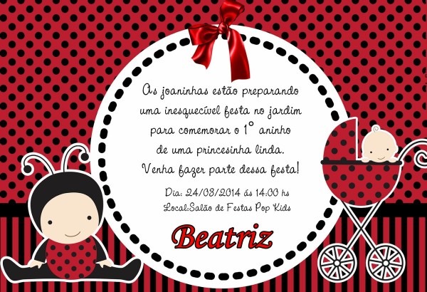 Convite Festa Aniversário Tema Joaninha . talitareginaarte.com
