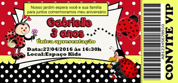 Convite Joaninha Formato Ingresso . Convite Joaninha Formato Ingresso feitas especialmente para você. Mais de 433 Convite Joaninha Formato Ingresso www.elo7.com.br