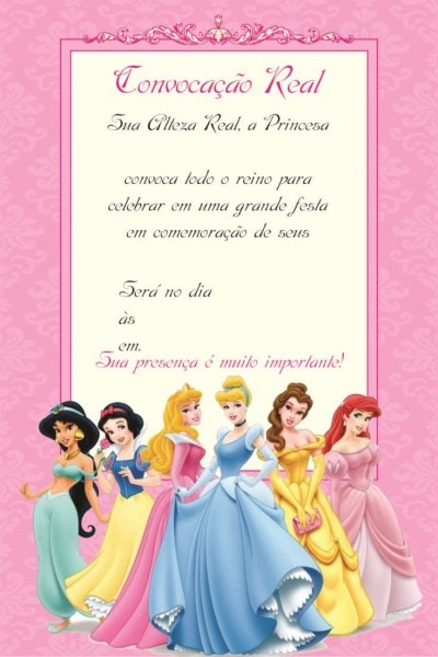 Convite princesas 4 â Modelos de Convite. www.modelosdeconvite.com.br