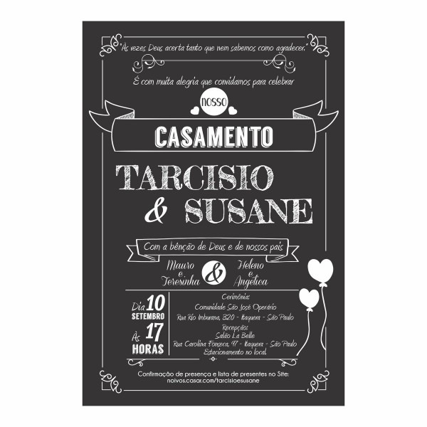 Convite virtual ou para imprimir modelo giz no Elo7 . Compre Convite virtual ou para imprimir modelo giz no Elo7 por R$ 35,00 | Encontre mais produtos de Convites de Casamento e Convites parcelando em até 12 vezes | Arte digital para modelo de convite lousa (chalkboard).