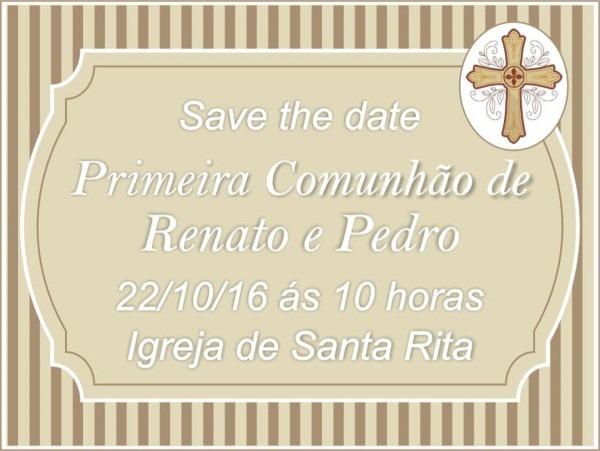 Convite Virtual Primeira Eucaristia: Modelos variados no Elo7 . Compre Convite Virtual Primeira Eucaristia: Modelos variados no Elo7 por R$ 45,00 | Encontre mais produtos de e Papel e Cia parcelando em até 12 vezes | Convite virtual para enviar aos amigos e familiares por e-mail e/ou whatsApp. Desenvolvido de acordo com suas preferências de cores e t..., C066CE www.elo7.com.br