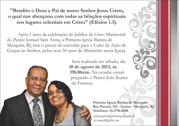 Louve Mesquita: 50 anos de Ministério do Pastor Iomael. louvemesquita.blogspot.com