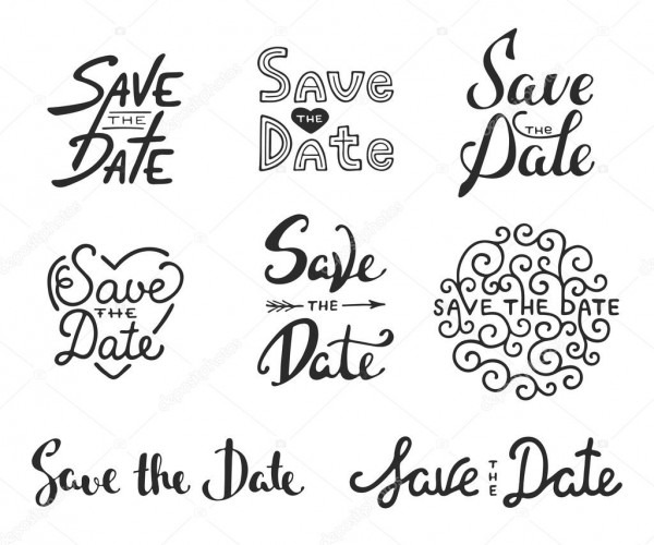 Salve a data frases de caligrafia. Exclusiva letras â Vetores de Stock © De_Malia .