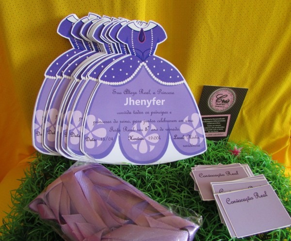 Convite vestido princesa Sofia no Elo7 . Compre Convite vestido princesa Sofia no Elo7 por R$ 3,50 | Encontre mais produtos de Convites de Aniversário e Convites parcelando em até 12 vezes | Convite recortado formato de vestido princesa Sofia