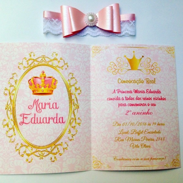 Convite Princesa c/moldura EVA e laço no Elo7 . Compre Convite Princesa c/moldura EVA e laço no Elo7 por R$ 5,90 | Encontre mais produtos de Convites de Festa Infantil e Convites parcelando em até 12 vezes | Convite Princesa com moldura de EVA, laço de papel, aplique de coroa e renda.