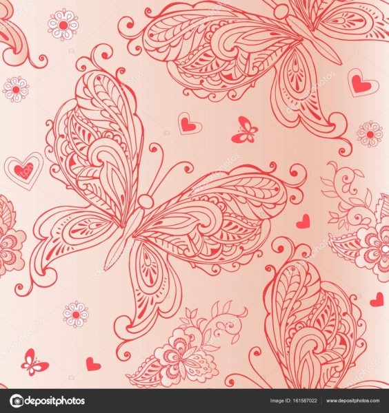 Elegante padrão sem emenda com borboletas cor de rosa, flores e corações. Tela de fundo ornamento decorativo, têxteis, papel de embrulho, cartões, convites â Vetores de Stock © Yeresko .