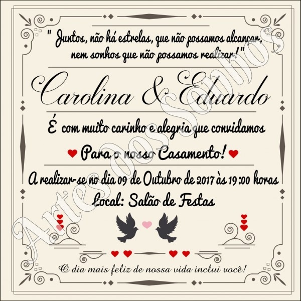 Convite Casamento no Elo7 . Compre Convite Casamento no Elo7 por R$ 1,25 | Encontre mais produtos de Convites de Casamento e Casamento parcelando em até 12 vezes | CONVITES TAMANHO: 10X14 CM