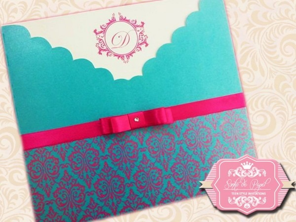 Convite 15 Anos . Compre Convite 15 Anos - Pink e Azul no Elo7 por R$ 2,90 | Encontre mais produtos de Convites de 15 Anos e Convites parcelando em até 12 vezes | Convite 15 anos Arabesco Pink e Azul, com monograma e laço channel com strass e recorte especial.