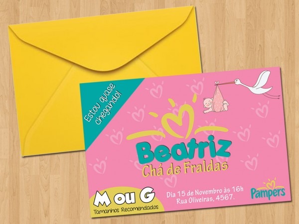 Convite . Compre Convite - Chá de Fraldas Pampers Menina no Elo7 por R$ 1,65 | Encontre mais produtos de Convites de Chá de Fraldas e Convites parcelando em até 12 vezes | Convite Personalizado - Chá de Fraldas Pampers