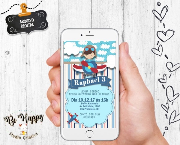 Convite digital aviador no Elo7 . Compre convite digital aviador no Elo7 por R$ 18,90 | Encontre mais produtos de Convites de Festa Infantil e Convites parcelando em até 12 vezes | Ideal para ser enviado pelo whatsapp, facebook, e-mail e/ou imprimir!